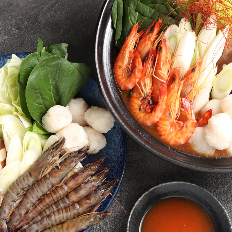 大分県産の新鮮な車海老を贅沢に鍋セットにしました。えびの旨味たっぷりのスープでお楽しみください。〆のちゃんぽん麺までお楽しみいただけます。
