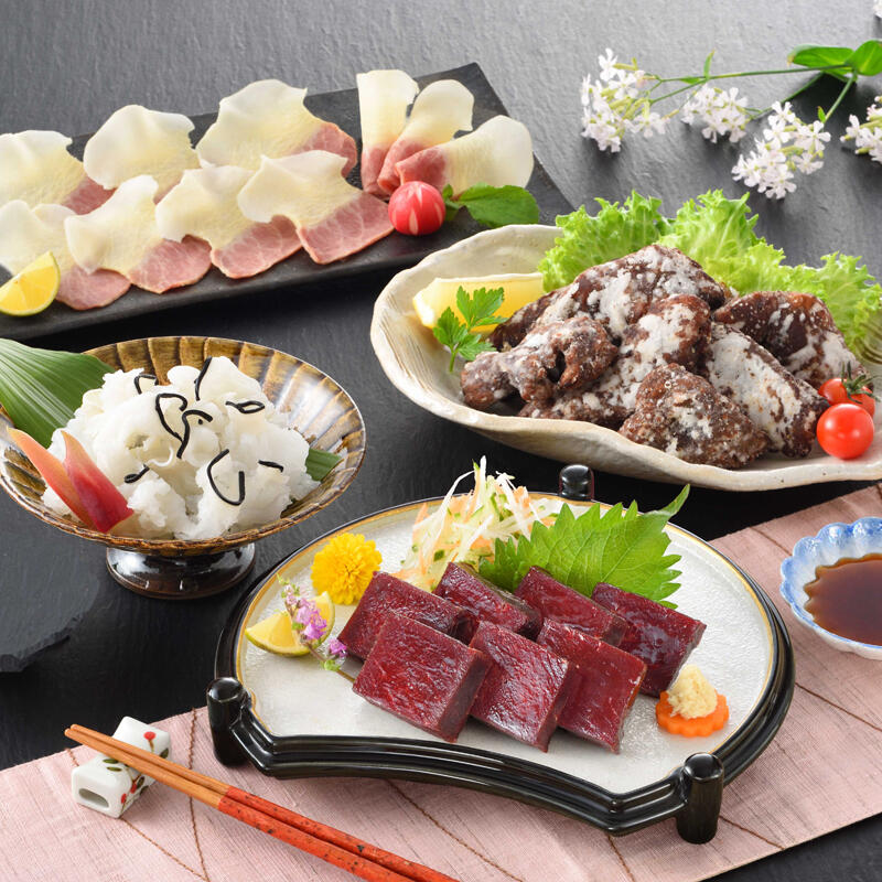 日本近海で捕鯨した鯨肉を詰合せにしています。鯨は頭から尾までほぼ全ての部位を美味しく食べることができ、部位ごとに味わいが違うため、自分好みの部位を探す楽しみもあります。