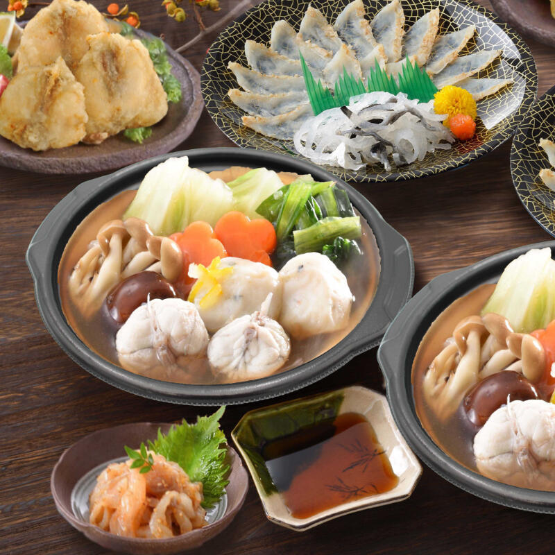 ふくの本場下関の職人による、真ふくのたたき刺身と、電子レンジで簡単調理、野菜・出汁などすべて入ったお一人様用寄せ鍋と詰め合わせた真ふく満喫セットです。風味と旨味を楽しめる真ふくのたたきと、ゆずの香り漂う真ふく寄せ鍋はあっさりしていて、一年中美味しくお召し上がりいただけます。