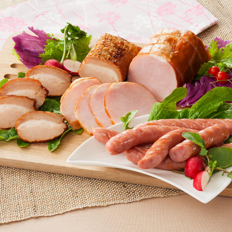 【商品内容】つるし焼豚170g、ロースハム(JAS特級)250g、あらびきウインナー150g