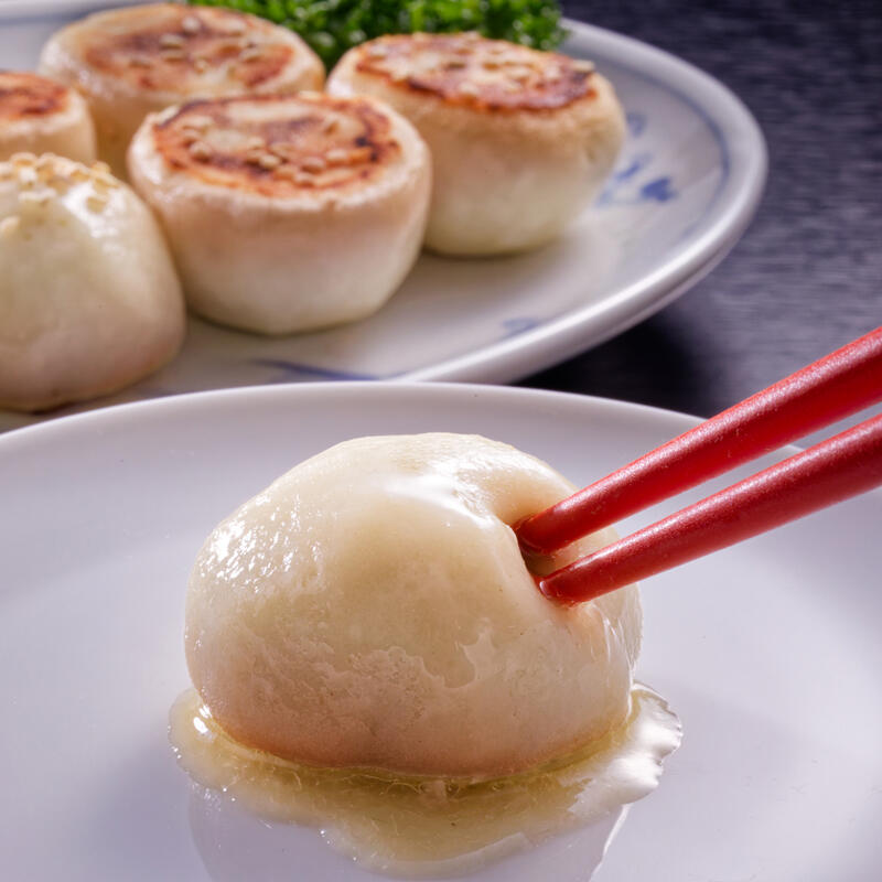 豚肉には柔らかくて旨味成分がたっぷり詰まった『鹿児島県産黒豚』を100%使用し、その旨味を存分に味わっていただけるように黒豚を粗挽きに仕上げてたっぷりと詰め込みました。黒豚の旨みが詰まった餡にオイスターソースを加え、コクのあるスープ溢れる焼き小籠包に仕上げました。