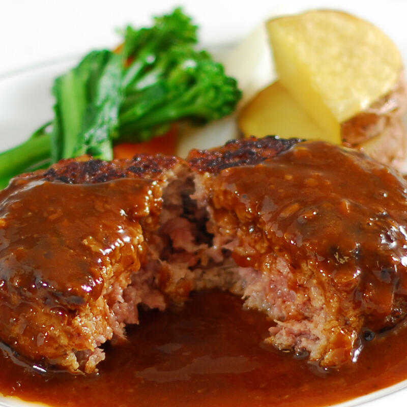 飛騨牛と飛騨豚を使用したハンバーグです。甘味たっぷりの淡路島産たまねぎと練り合わせてふんわりやわらかなハンバーグに仕上げました。