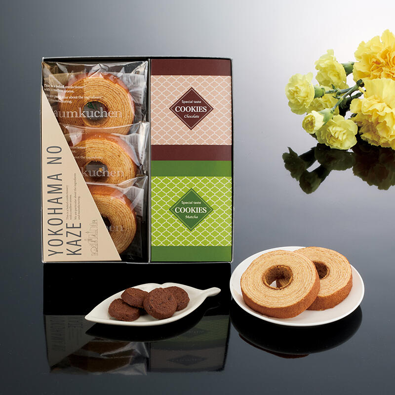 【商品内容】バウムクーヘン3個、チョコクッキー1袋、抹茶クッキー1袋