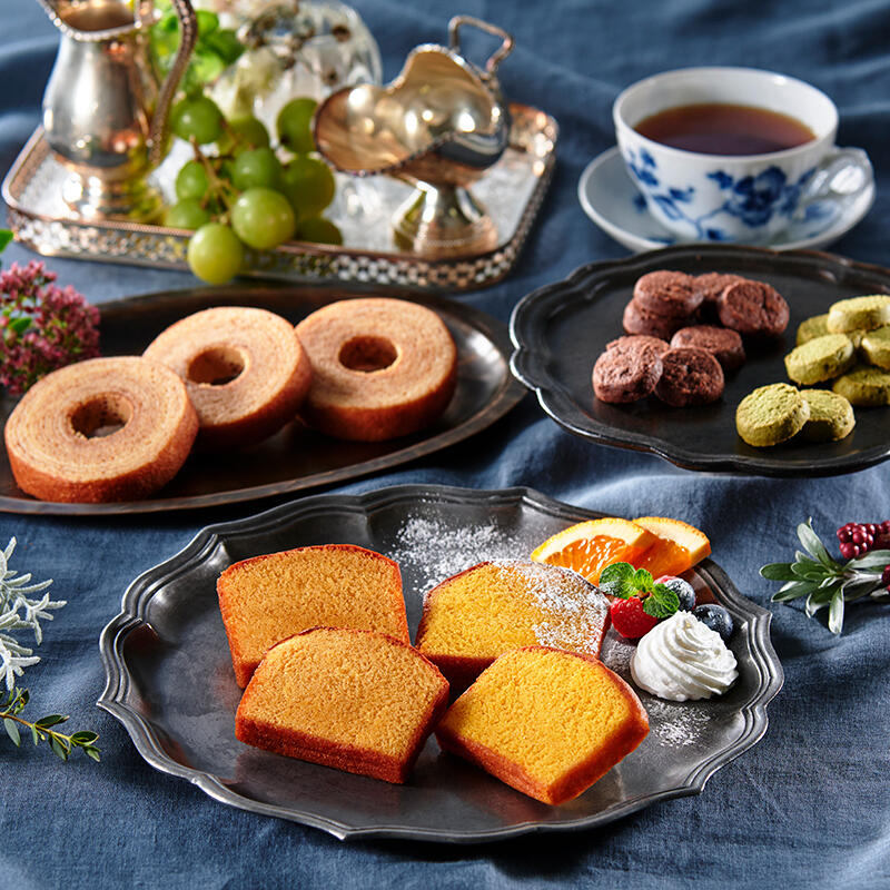 文明開化の頃より、素材と製法にこだわり続けたパウンドケーキやバウムクーヘンなど人気の焼菓子をセットしました。芳醇な香りが口に広がる贅沢な大人の味わいを心ゆくまでお楽しみいただけます。