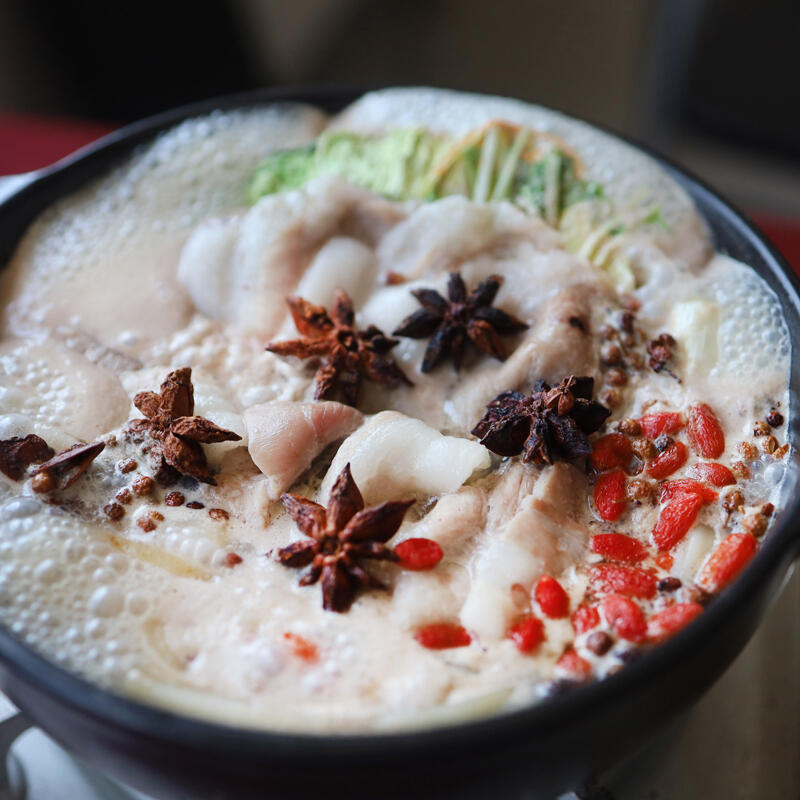 薫り高い7種類のスパイス(香味素材)と2種の香味野菜を使った本格薬膳パイタン鍋。甘味が強く濃厚な旨味が特徴の熟成オリーブ豚と相性抜群の優しい鶏パイタン味のスープが特徴です。お水とお好みの野菜を加えるだけで、お家で簡単に専門店以上の絶品鍋がお楽しみいただけます。