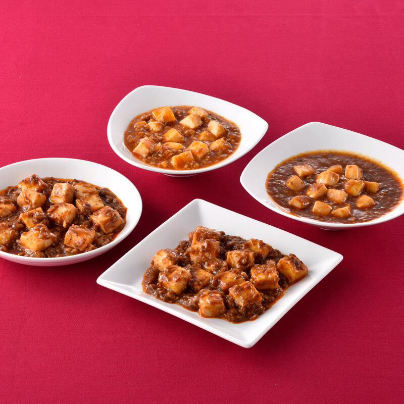 四川飯店グループの元オーナーシェフである中華の鉄人・陳建一と、息子でもある四川飯店三代目の陳建太郎がプロデュースした個性あふれるこだわり麻婆豆腐4種のセットです。それぞれの味の違いを食べ比べてお楽しみいただけます。