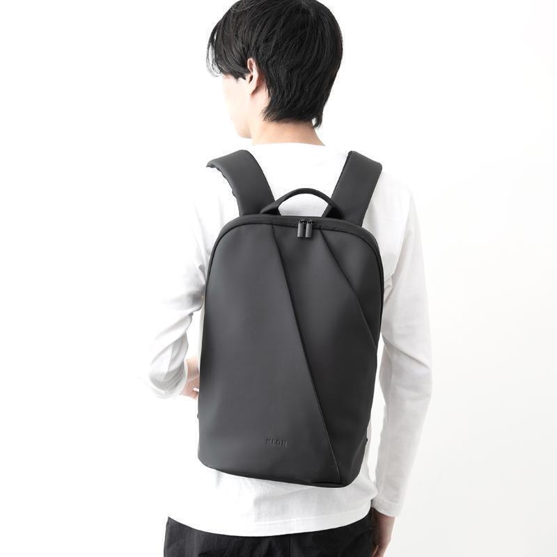 アシンメトリーなラインが印象的な、KLONらしいミニマルデザインのバックパックです。何度も試作を重ね、日本人の背中にフィットする絶妙なサイズ感を実現。