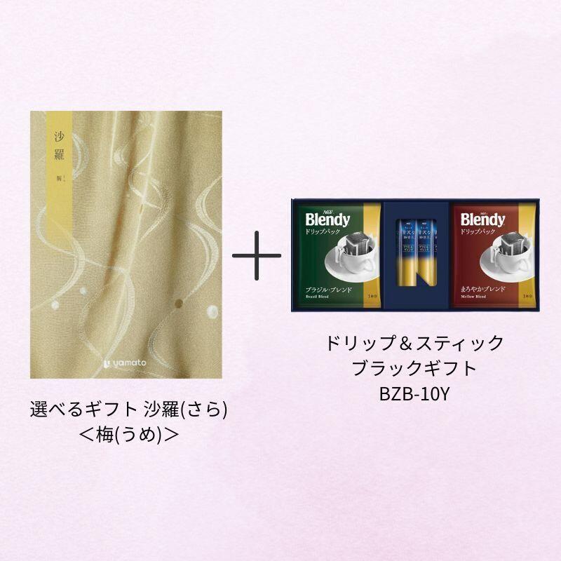 弔事のお返しとして人気の高いカタログギフト『沙羅(さら)』に、香り豊かなドリップ&スティックコーヒーギフトを組み合わせました。