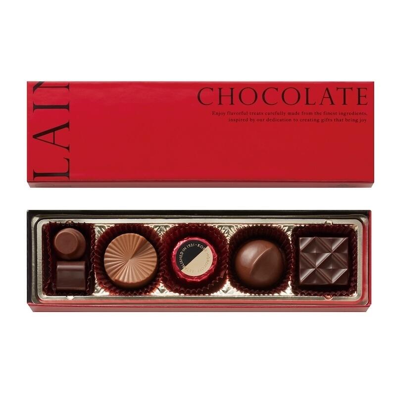 ミルク、エキストラミルク、セミスイートの3種類のチョコレートを日本人の味覚に合うように独自に開発。原料となるカカオ豆は産地ごとの特徴を吟味して厳しく選別、ブレンドしています。さまざまな形にすることにより、それぞれに異なった口どけ、香り、味わいが楽しめます。