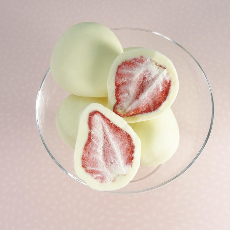 銀座千疋屋が選別した国産いちごの2Lサイズの大粒いちごをフリーズドライし、優しい甘みのホワイトチョコレートの中に閉じ込めました。チョコの甘みとふわっと香るいちごの香り、程よい酸味も味わえます。