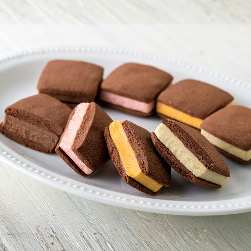 チョコレートの風味を引き出すため、焼き塩を使用したさっくり食感のサブレ生地に、フリーズドライのフルーツを混ぜて焼き上げたフルーツショコラをサンドしました。さっくりホロホロの食感とコクのあるフルーツショコラをお楽しみください。