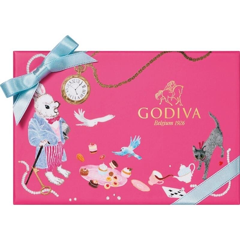 「不思議の国のアリス」の印象的なシーン「ティーパーティ」をイメージしたチョコレートを楽しめる、キュートな「アリスのティーパーティ コレクション」。ティーパーティを彩る紅茶をイメージしたチョコレート、ゴディバの100周年を記念してリニューアルされたハート形のチョコレート、シーズン限定カレを、物語のシンボルのトランプやティーセット、白うさぎなどを描いたパッケージに詰め合わせました。
