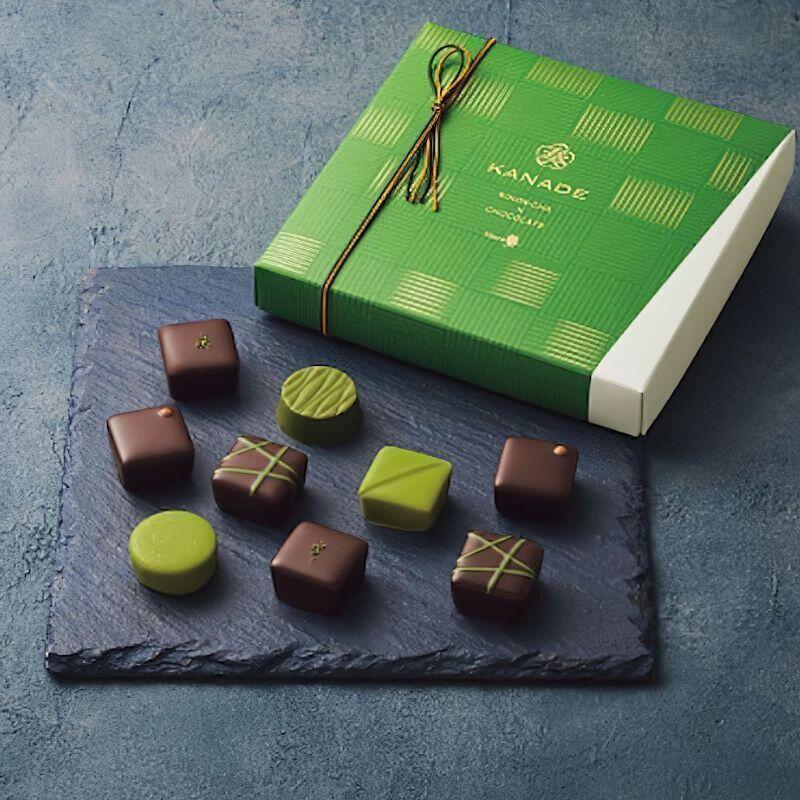 チョコレート×9(宇治抹茶・玉露・加賀棒茶R×各2、濃宇治抹茶・玄米茶・碾茶×各1)●手提げ袋付