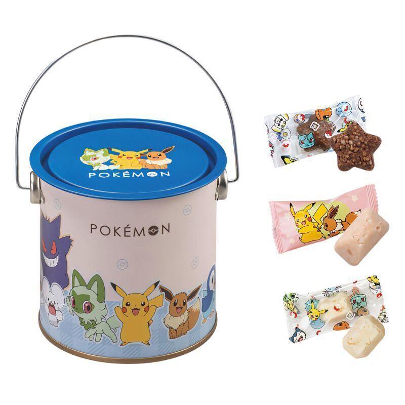 ポケモンがデザインされた取っ手付きの缶にクランチチョコを詰め合わせました。