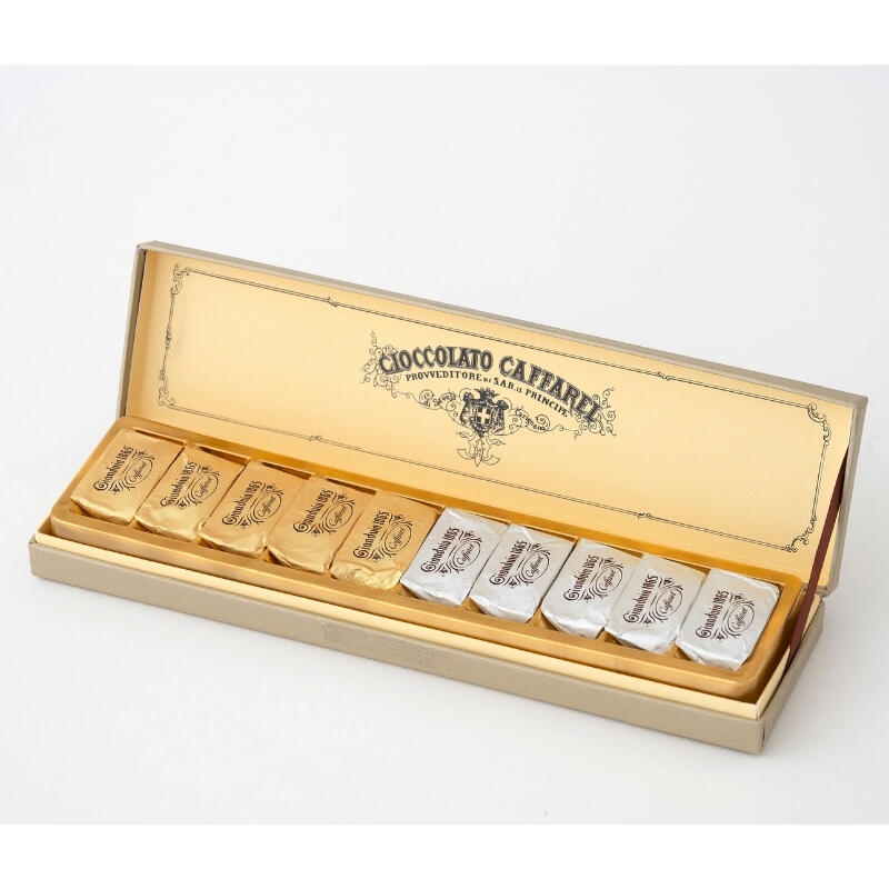 イタリアらしいクラシックなパッケージに、カファレルの代表作ジャンドゥーヤとジャンドゥーヤビターをアソートしたセット。落ち着いた雰囲気の箱は、贈る相手を選びません。高品質のイタリア・ピエモンテ産のヘーゼルナッツペーストを贅沢に使用した滑らかな口どけのチョコは、コーヒーのお供にもぴったりです。定番とビター、両方を楽しみたい方に。10個入り。