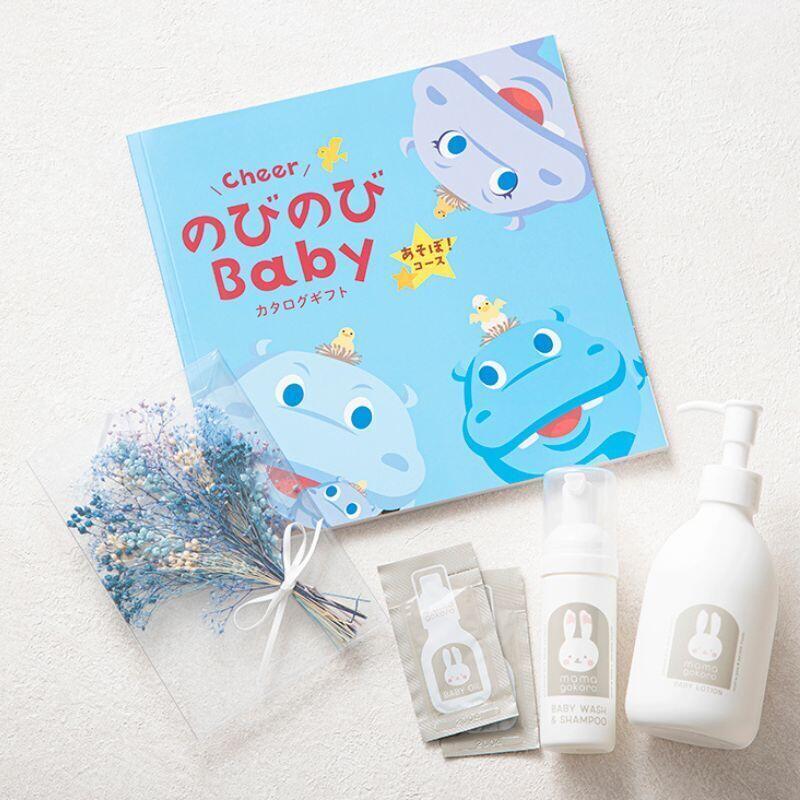 セットのカタログギフトには、赤ちゃんの成長を支えるものから、頑張るパパ・ママをねぎらうご褒美アイテムまで勢ぞろい。