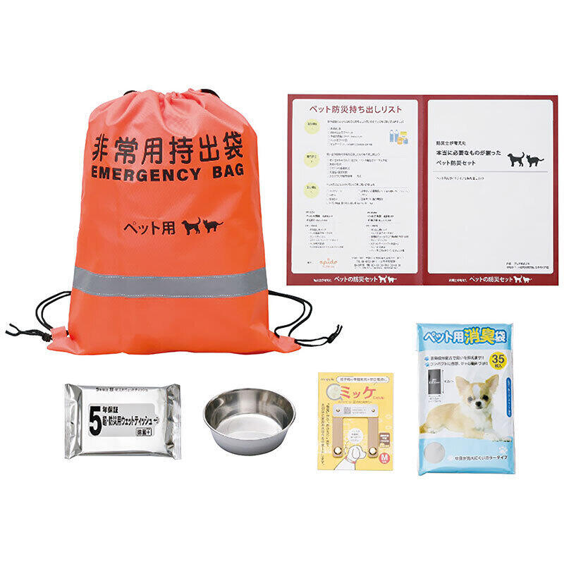 犬・猫専用防災セット。避難所では、ペットの備蓄品が十分ではありません。いざという時のために必要な防災グッズ、ガイドラインを持ち運びやすいバッグにまとめました。