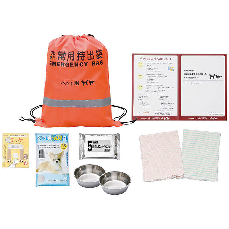 犬・猫専用防災セット。避難所では、ペットの備蓄品が十分ではありません。いざという時のために必要な防災グッズ、ガイドラインを持ち運びやすいバッグにまとめました。