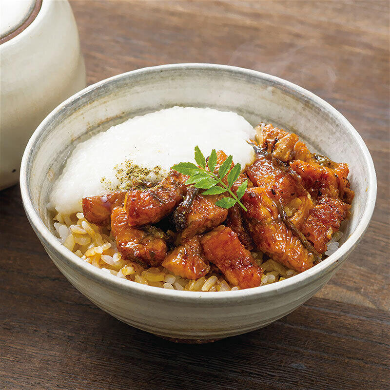 京料理六盛こだわりの焼き加減に仕上げた鰻をふわっとしたとろろとあわせてお召し上がりください。たれと山椒の風味、うなぎととろろの食感をお楽しみいただけます。