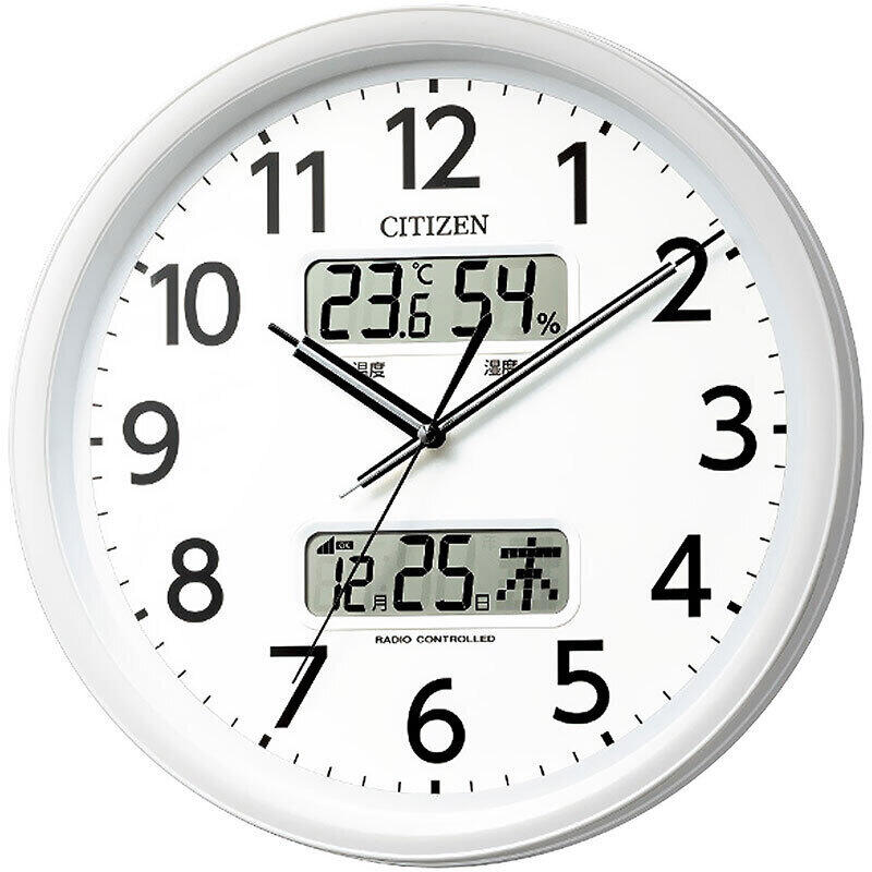 コチコチ音がしない連続秒針の液晶表示付電波掛時計です。 大きな文字板で、時間も温湿度もカレンダーも見やすくなっています。