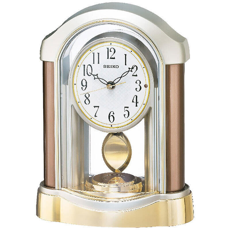 電波時計プラスチック枠(薄金色パール塗装)飾り振り子音の静かな連続秒針