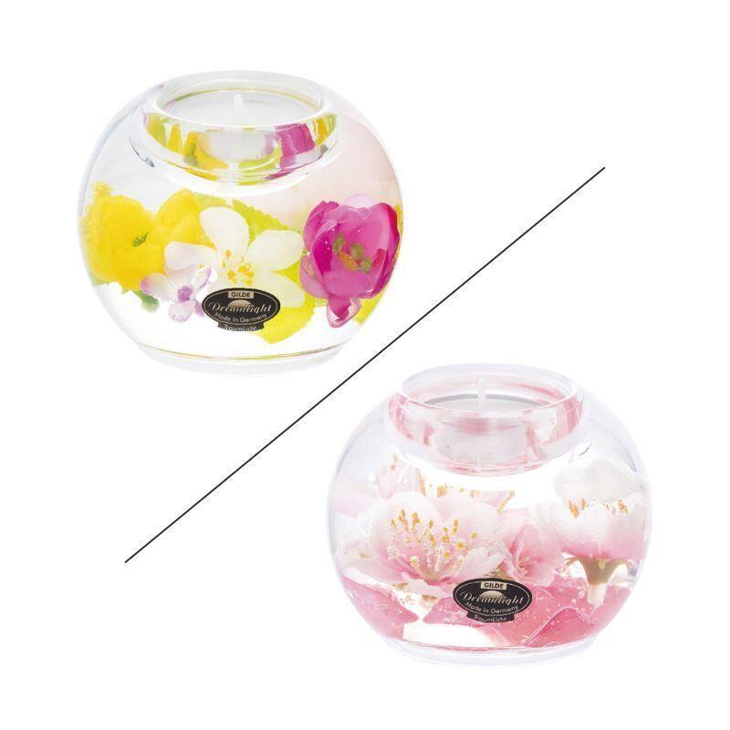 1999年にドイツで誕生したドリームライトは、マウスブロウで成形したガラスの中に色とりどりのお花やオーナメントをジェルで閉じ込めた、ハンドメイドのキャンドルホルダーです。キャンドルとしてだけでなく、お部屋にお花を飾る様に、インテリアを華やかに演出するアイテムとしても活躍します。