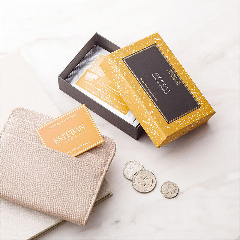 働く方を香りで応援する、洗練されたコミニケーションツール。お名刺入れやお財布、手帳、マスクケース、クローゼット、引き出しなどに入れ、香りを移してお楽しみいただけます。アイリスとカシミアの優美なパウダリックフローラルの香りです。