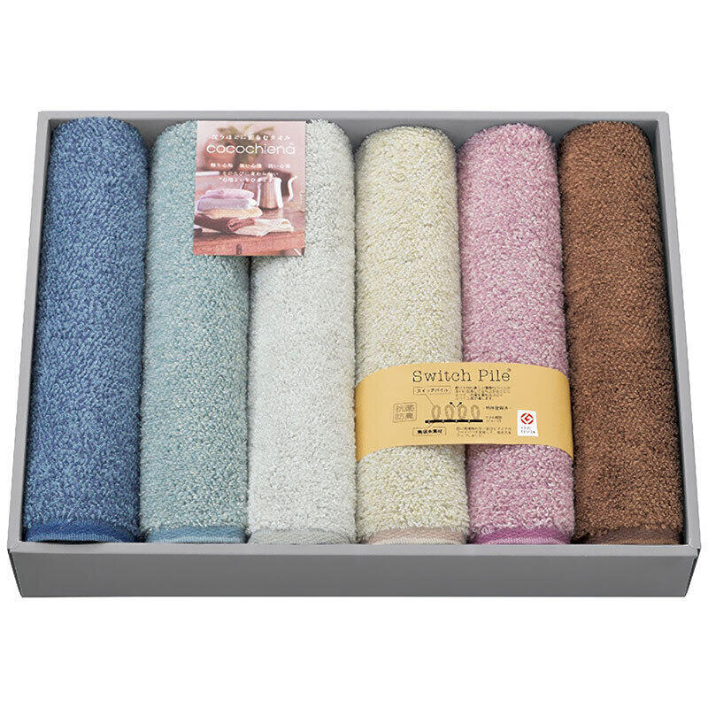 現品・内容・サイズ・材質: 34×80cmフェイスタオル6枚・綿93%・ポリエステル7%