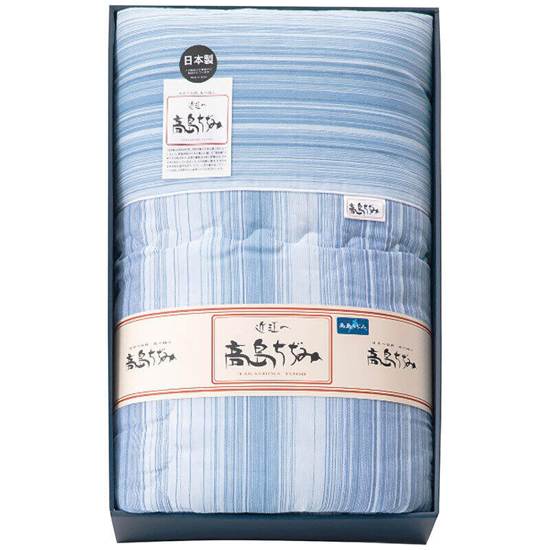 高温多湿な日本の風土に適した「高島ちぢみ」緯糸に強い撚り(より)をかけて、生地の表面にシボという凸凹したしわを出した織物です。肌に触れる面積が少ない為、サラサラとした肌触りが特徴です。2012年1月地域団体商標登録登録番号第5461250号