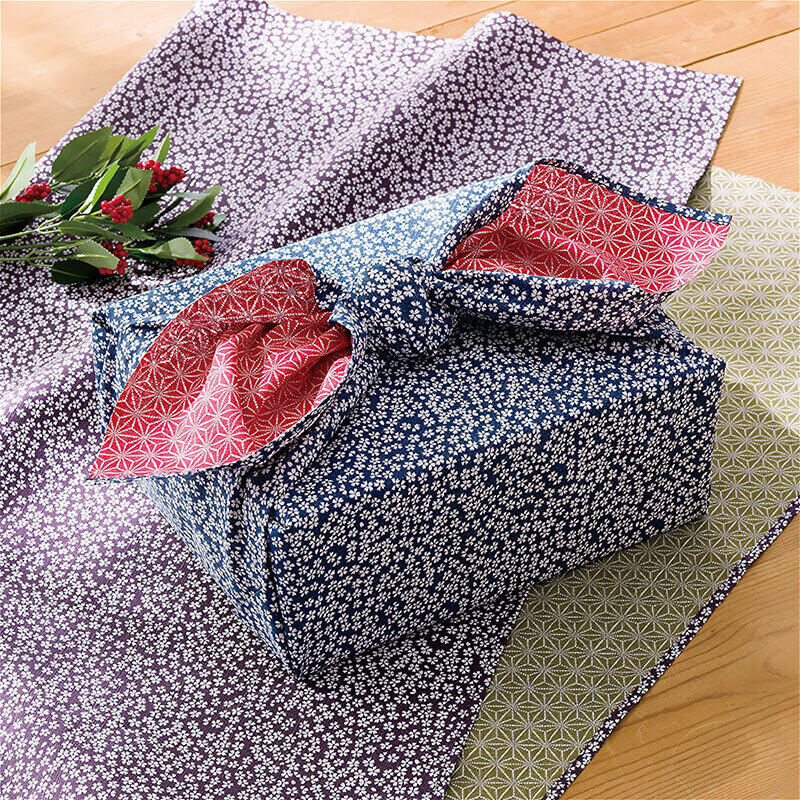 人気の小桜柄とシックな麻葉柄のリバーシブル風呂敷。ものを包むだけでなく、エコバッグやお部屋のインテリアとしても役立つ大判サイズです。