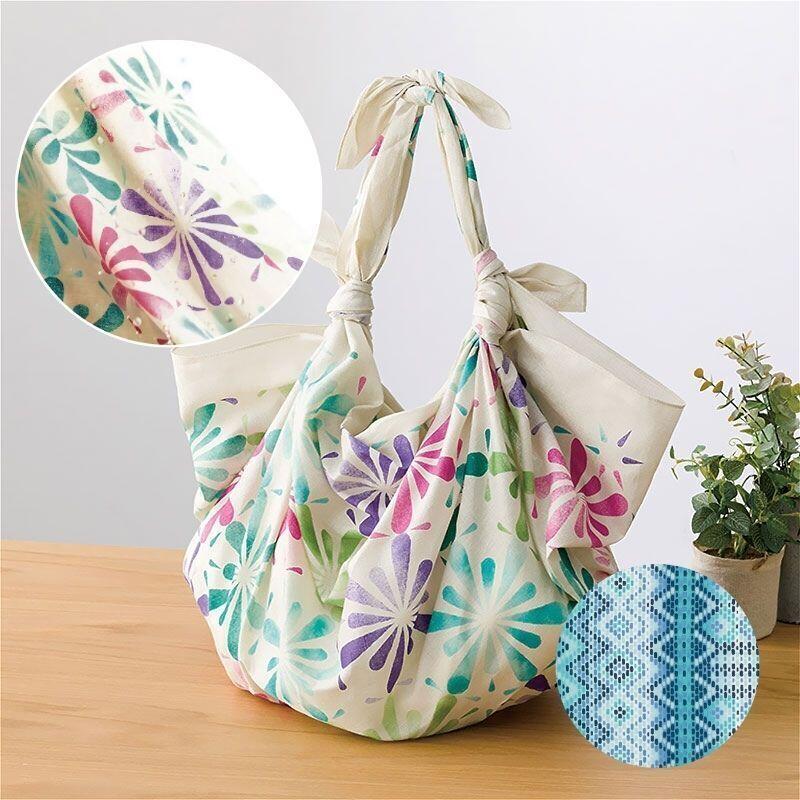 軽くて柔らかい綿ふろしきに撥水加工を施したふろしき。ものを包むだけでなく、結んでエコバッグにしたり、ストールやショールのように使ったり、インテリアに使ったり、様々な用途で暮らしを彩ります。アウトドアのお供や防災用途にも。