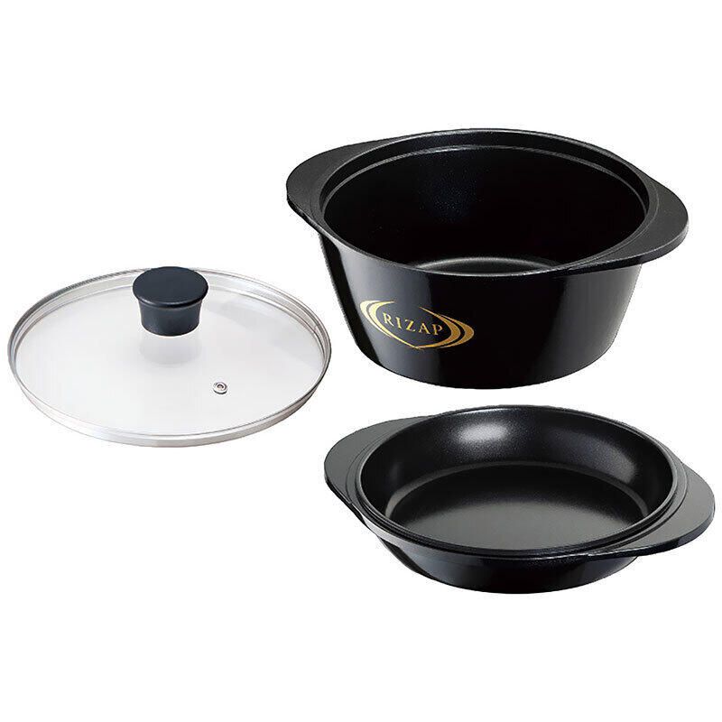 蒸気をしっかり閉じ込め、素材のうまみを引き出す水なし万能調理鍋セット。「炊く」「煮る」「蒸す」「焼く」「炒める」「茹でる」「揚げる」がこれひとつで可能。蓋の重みで蒸気が逃げにくい構造に加え、調理時の水滴が隙間を密封するため、鍋の中で熱と蒸気がムラなく循環し、素材をおいしさを引き出します。熱が逃げにくいので加熱時間が短縮され余熱調理可能。弱火で調理できるので、省エネルギーで経済的です。IH・ガス火など、多様な熱源で使えるのも嬉しい。ライザップ監修36レシピ付き。