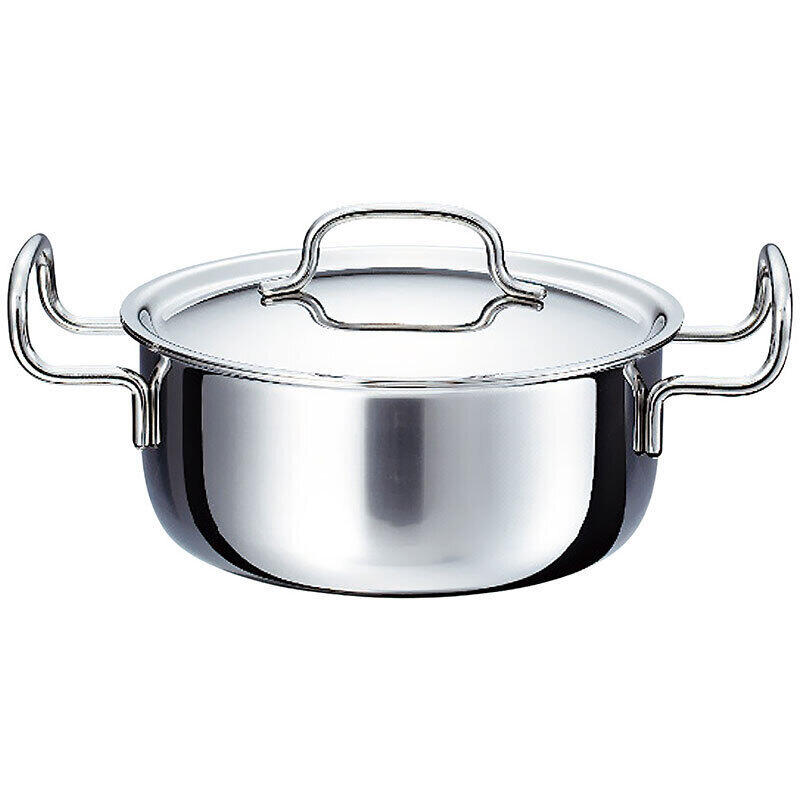 現品・内容・サイズ・材質: 直径20cm両手鍋(蓋付)1個・本体:全面7層構造(18-8ステンレス・アルミニウム・アルミニウム合金・有磁性ステンレス)・本体板厚:2.4mm