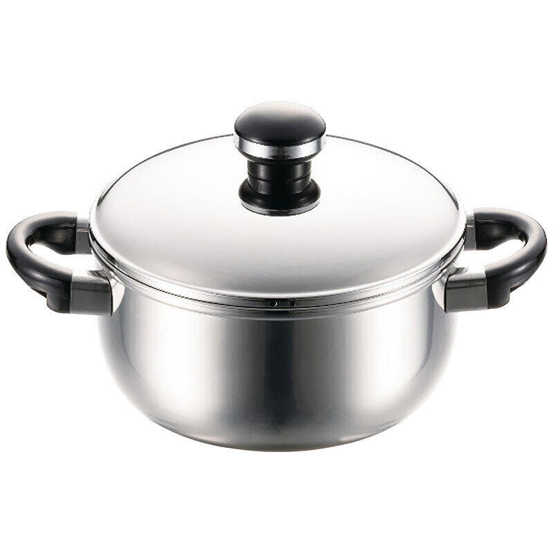 現品・内容・サイズ・材質: 直径20cmソースポット1個・全面鉄芯3層鋼(ステンレス・鉄・ステンレス)・ハンドル、ツマミ:フェノール樹脂・板厚:1mm