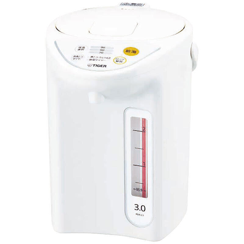 マイコン電動ポット。6時間の節電タイマー付、3段階の保温温度設定など機能が充実。