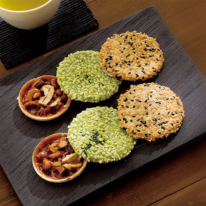 現品・内容・サイズ・材質: ごまと落花生・抹茶と玉露各(2枚入×6袋)・木の実あわせ8枚