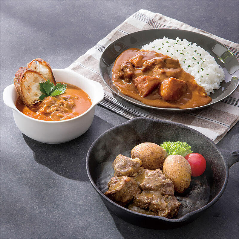 現品・内容・サイズ・材質: 北海道鶏肉と野菜のスープカレー230g・北海道素材にこだわったビーフカレー230g・北海道黒酢豚角煮130g・北海道麻婆豆腐厨房仕込み200g・北海道ビーフストロガノフ200g・北海道牛肉ステーキ140g各1個