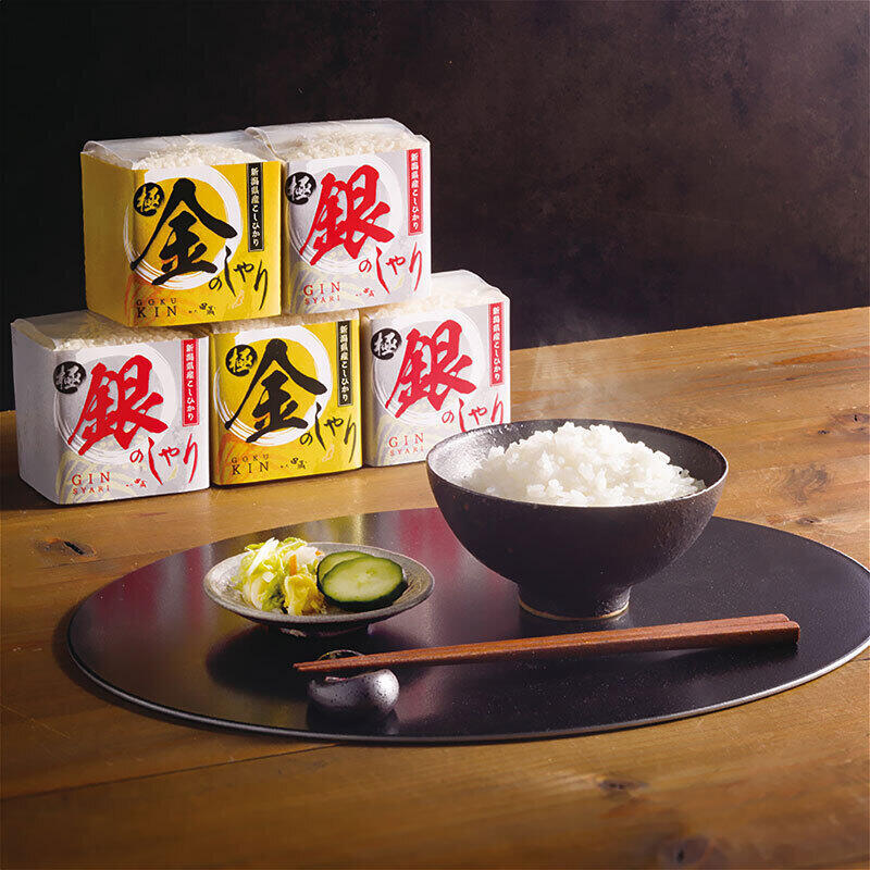 現品・内容・サイズ・材質: 新潟県産極金のしゃり・新潟県産銀のしゃり各300g(2合)各3個
