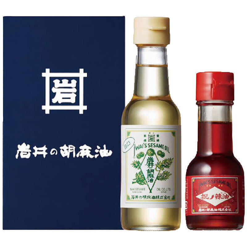 創業1857年、伝統の圧搾製法にこだわる岩井の胡麻油。社名である「岩井」を「祝」に変えた特別ラベルの胡麻辣油をご用意しております。結婚式の縁起物やお祝いごとの贈り物におすすめです。