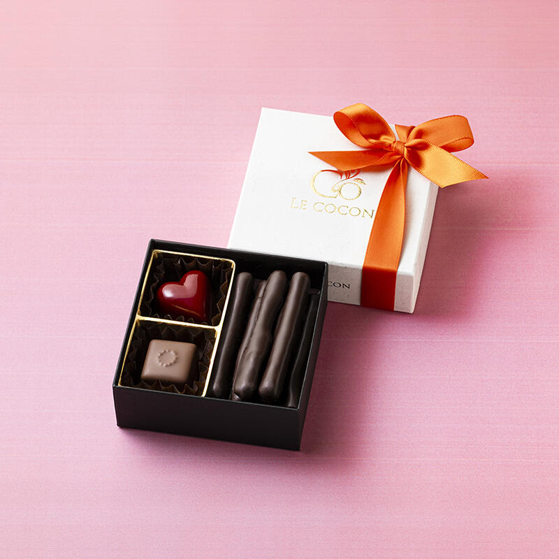 詰め込んだガナッシュに個性が光るボンボンショコラ2種と、人気のオランジェットが入ったセットです。それそれ異なるチョコレートの味わいが楽しめます。