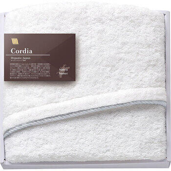 「つなぐ」を象徴するロープ柄ヘムが印象的なCordiaのタオル。