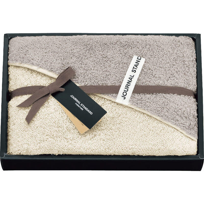 シンプルなリバーシブルデザインのタオルギフトです。タオルの中央に引っ掛けられる織ネーム付きです。