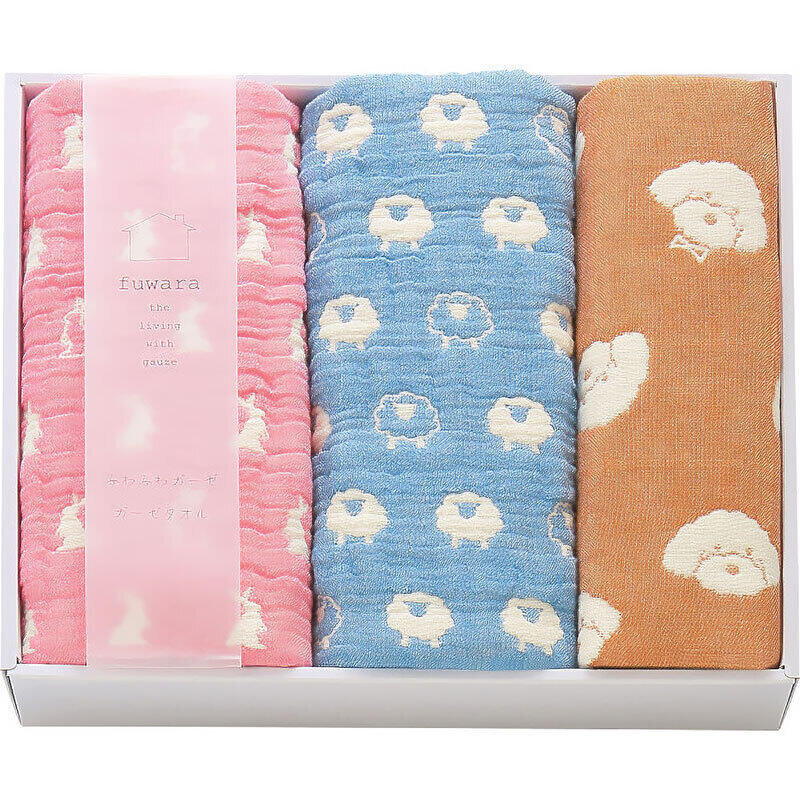 やわらかな6重織ガーゼを使用したフェイスタオル2枚とハンカチ1枚のセット。