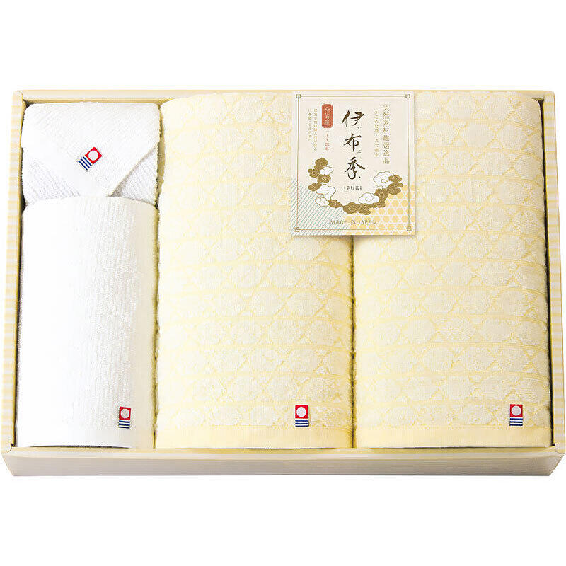 「かごめ紋様」と「あぜ織」の日本の伝統的な模様をあしらったやさしい色合いの今治タオル。伊予の穏やかな地で百三十年の伝統が織りなす季節を紡ぐタオルです。
