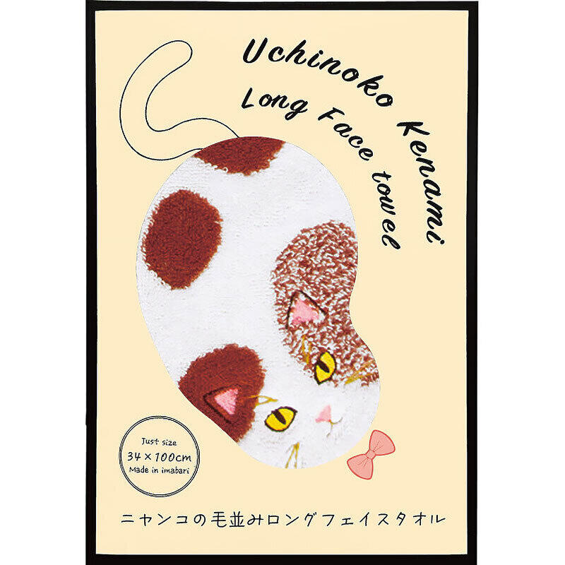 ニャンコの柄をデザインした、個性豊かなロングフェイスタオル。本場今治で。本物のような手触りを追求しました。お気に入りの「うちの子」と、毎日一緒に過ごしませんか。猫種ごとに使用すつ糸を変え、ニャンコの毛並みを表現しました。こちらを見つめる、かわいいニャンコの表情を刺繍しました。ロングフェイスなので、全身これ1枚でOK。頭や髪にも巻きやすく、干すときもスリムで嬉しいサイズです。