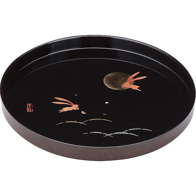 紀州塗のお盆 元気に飛び跳ねる「うさぎ」の絵柄は出産・快気をはじめとする内祝い品として好適です。お名入れ可