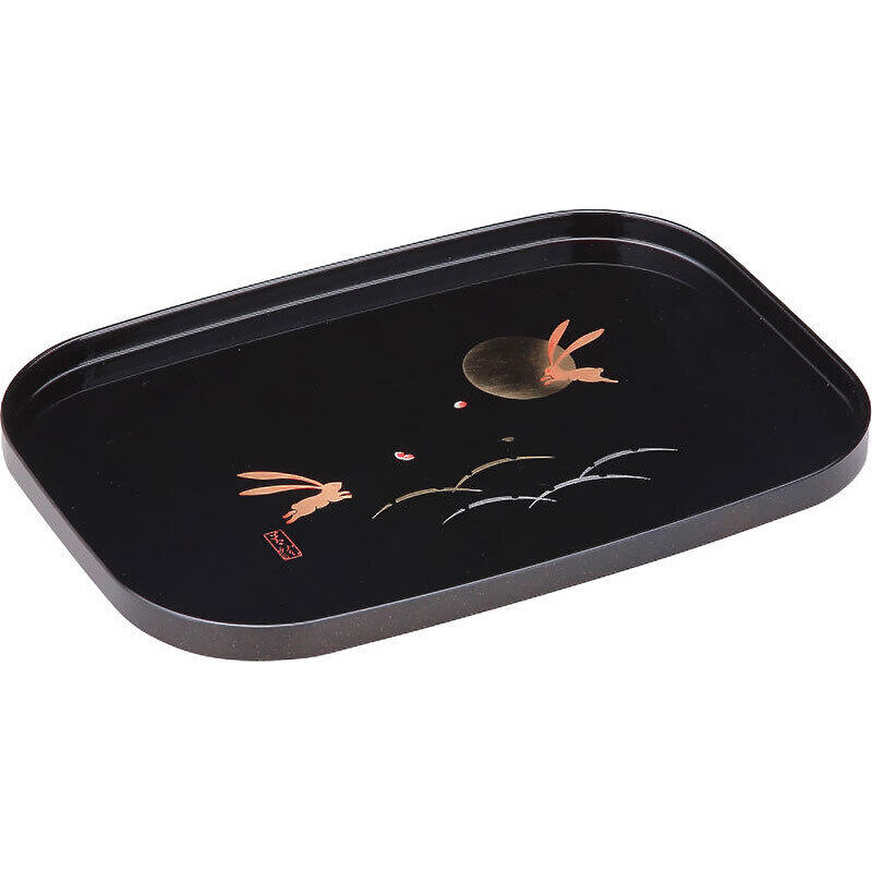 紀州塗のお盆 元気に飛び跳ねる「うさぎ」の絵柄は出産・快気をはじめとする内祝い品として好適です。お名入れ可