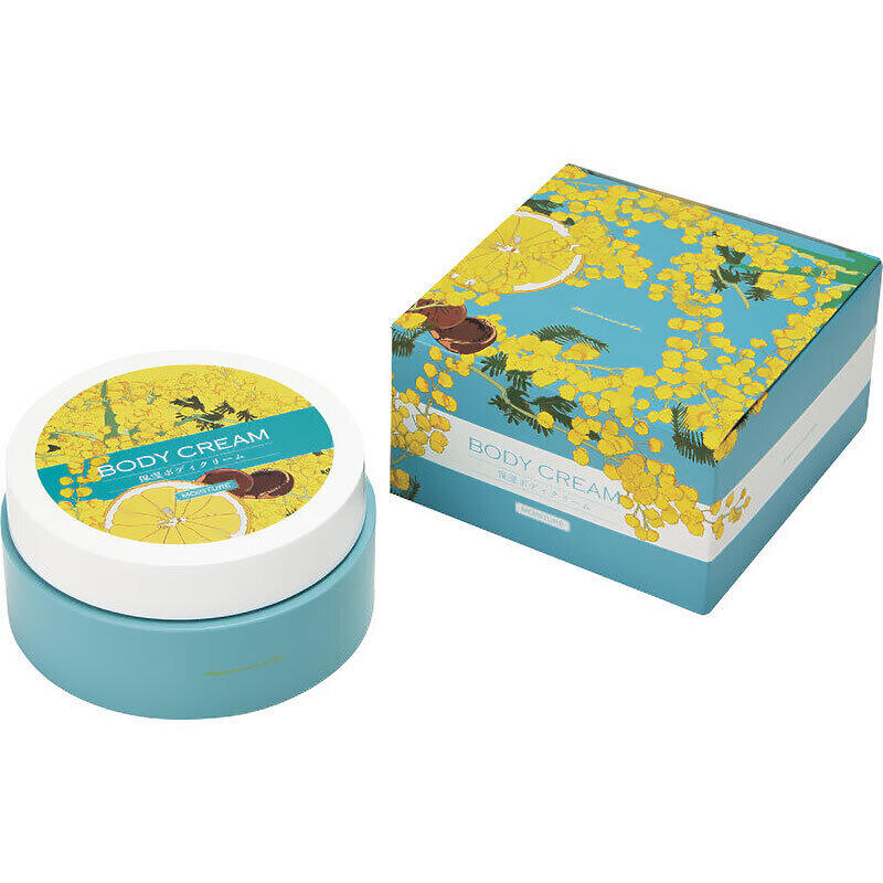ミモザ精油(香料)がふんわりと柔らかく香る、するすると伸びる滑らかな使い心地のボディクリーム。保湿成分のヘーゼルナッツオイルとアロエベラ配合で、しっかり潤うのにべたつかず、柔らかな肌に導きます。
