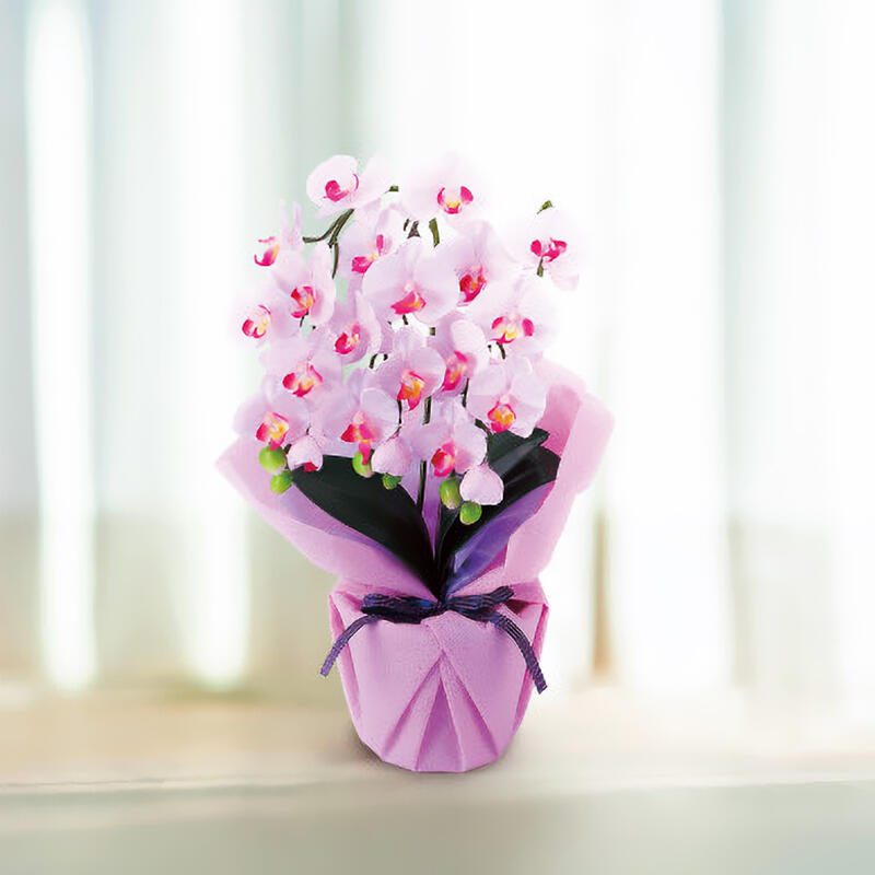 コンパクトで場所を取らない3本立ちミニ胡蝶蘭。エアコンの風量や窓からの光量なども気遣う必要がなく、水やりなど生花のようなお世話は不要。誰でも気軽に胡蝶蘭の美しさをお楽しみいただけます。