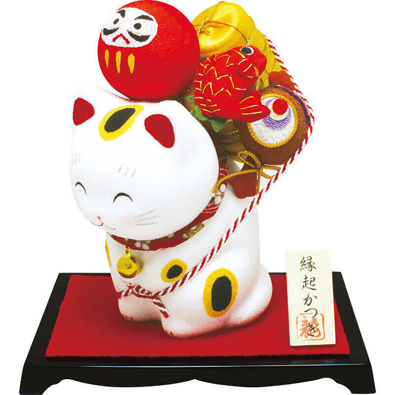 縁起物を、背中いっぱいに背負ってやってきた福猫です。